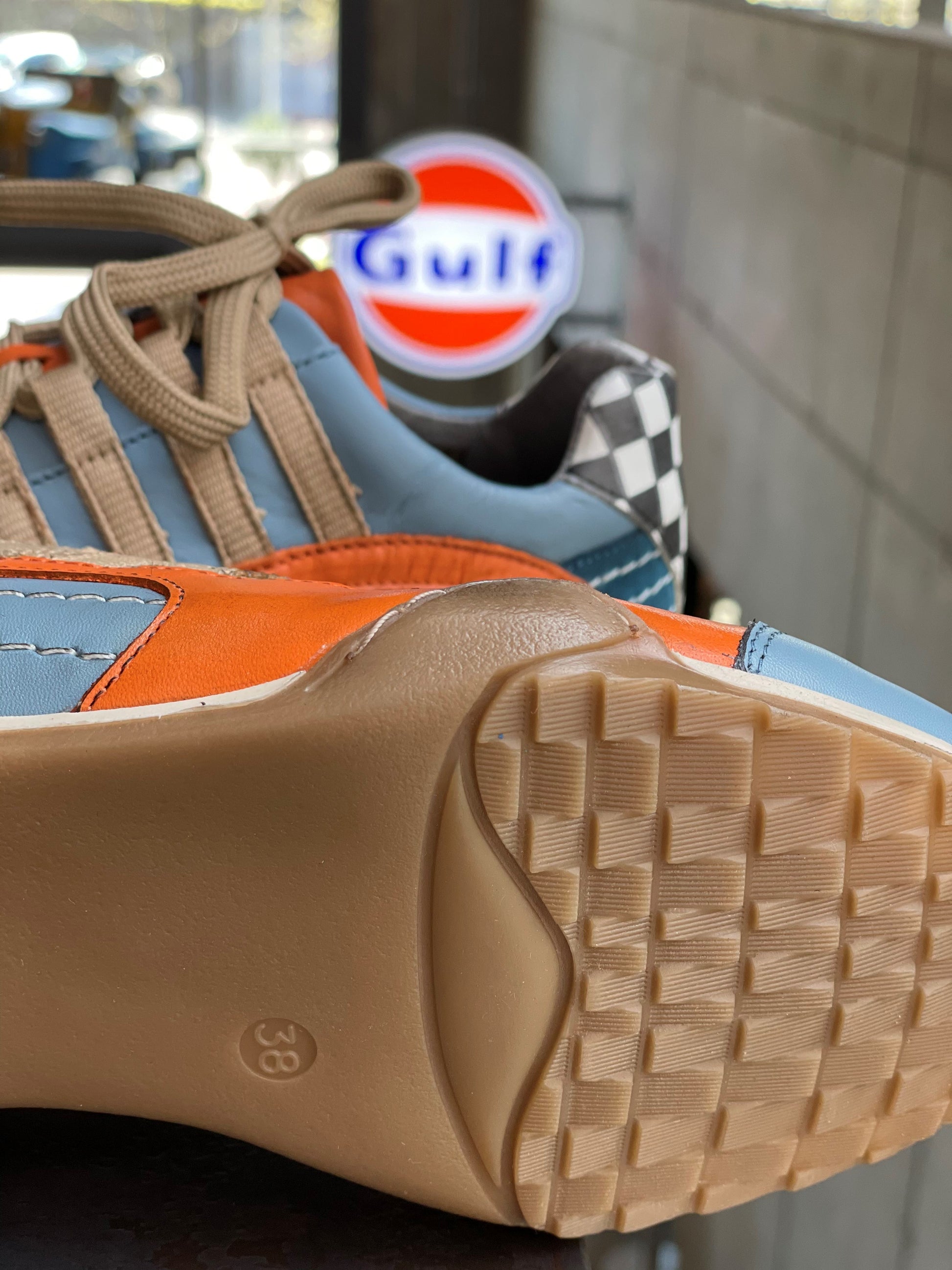 GrandPrix Originals nous partage son modèle Ice Blue aux couleurs mythiques de la marque Gulf. Un modèle qui, encore et toujours, offre un style vestimentaire atypique et conserve la totalité de ses performances de conduite.