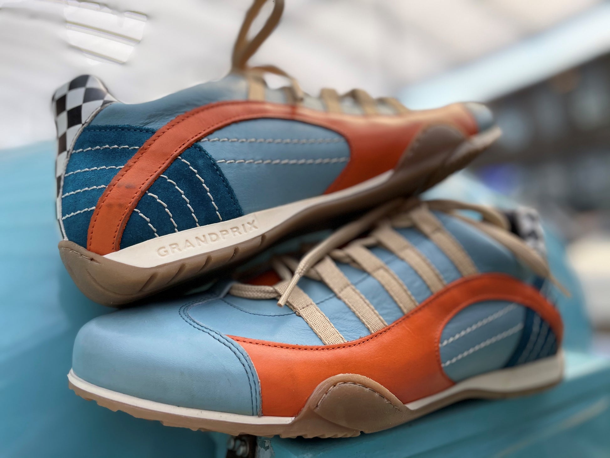 GrandPrix Originals nous partage son modèle Ice Blue aux couleurs mythiques de la marque Gulf. Un modèle qui, encore et toujours, offre un style vestimentaire atypique et conserve la totalité de ses performances de conduite.